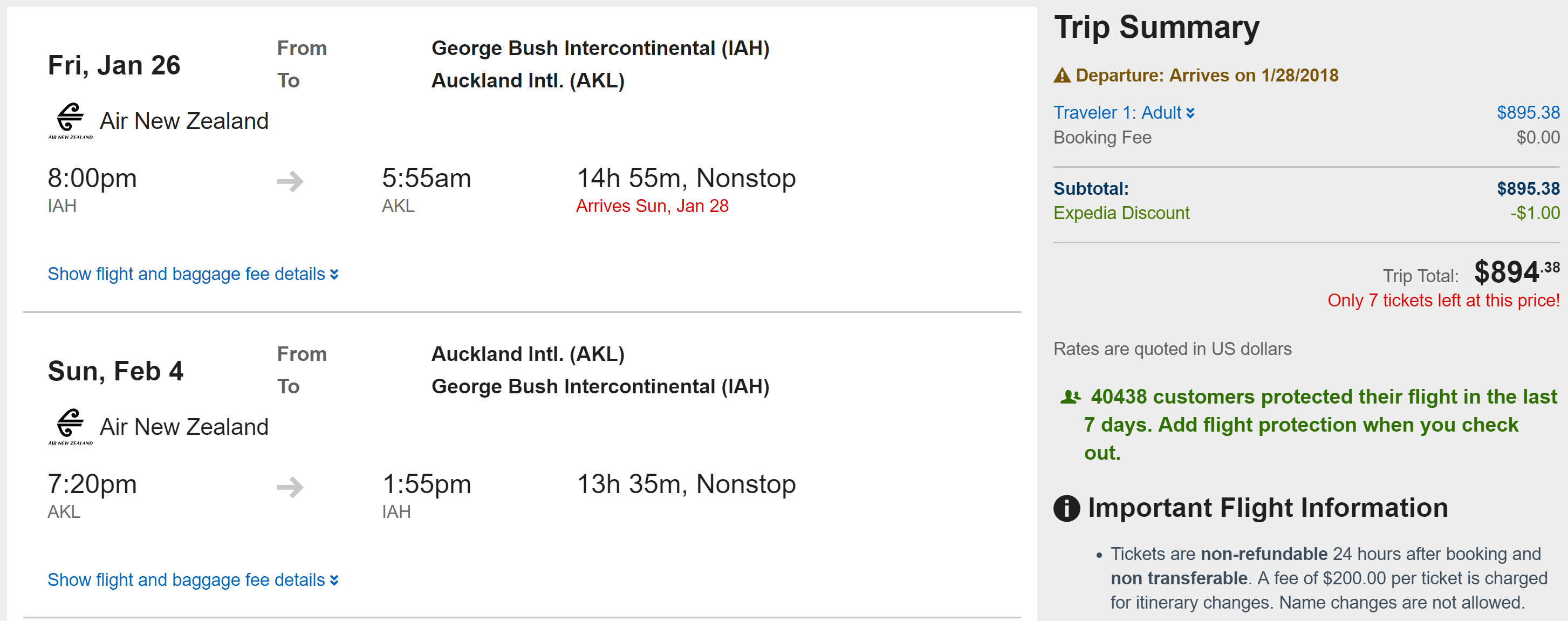Houston (IAH) to Auckland (AKL) for $894 round-trip nonstop: