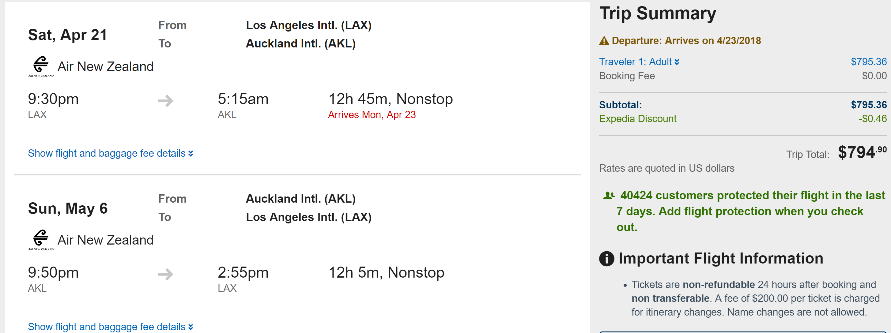 Los Angeles (LAX) to Auckland (AKL) for $795 round-trip nonstop: