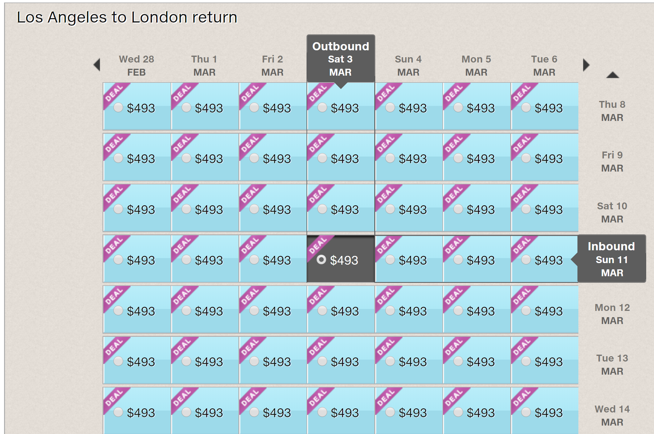 Airfare deals are typically only available on limited dates. We recommend you use Google Flights to find dates to fly, then book through an online travel agency, such as Orbitz or Expedia, which allows you to cancel flights without penalty by 11pm Eastern Time within one day of booking. However, if you're using the American Express Platinum Card, you'll need to book directly with the airline or through Amex Travel portal to get 5x MR points. Remember: Fares may disappear quickly, so book right away and take advantage of Orbitz or Expedia's courtesy cancellation if you're unable to get the time away from work or family.