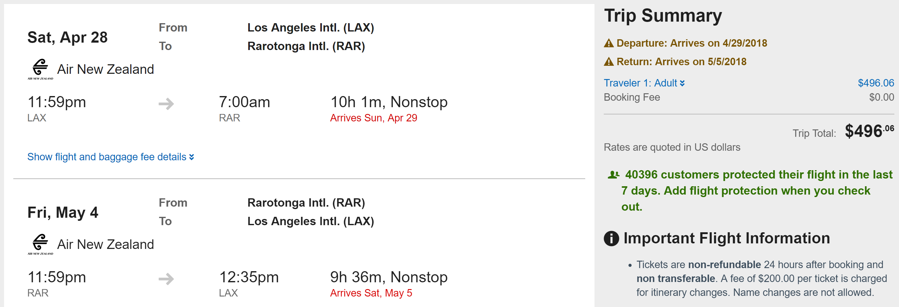 Los Angeles (LAX) to Rarotonga, Cook Islands (RAR) for $496 round-trip nonstop: