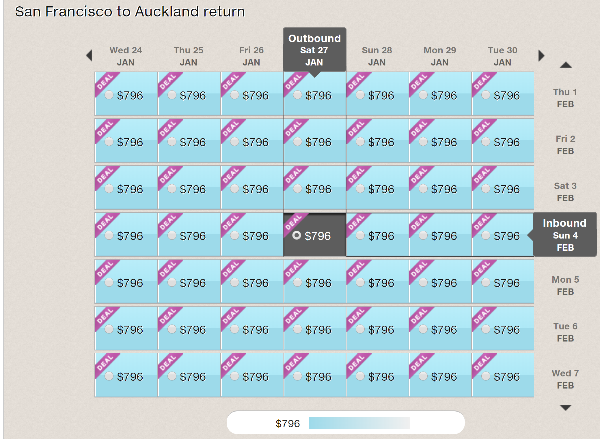San Francisco (SFO) to Auckland (AKL) for $796 round-trip nonstop: