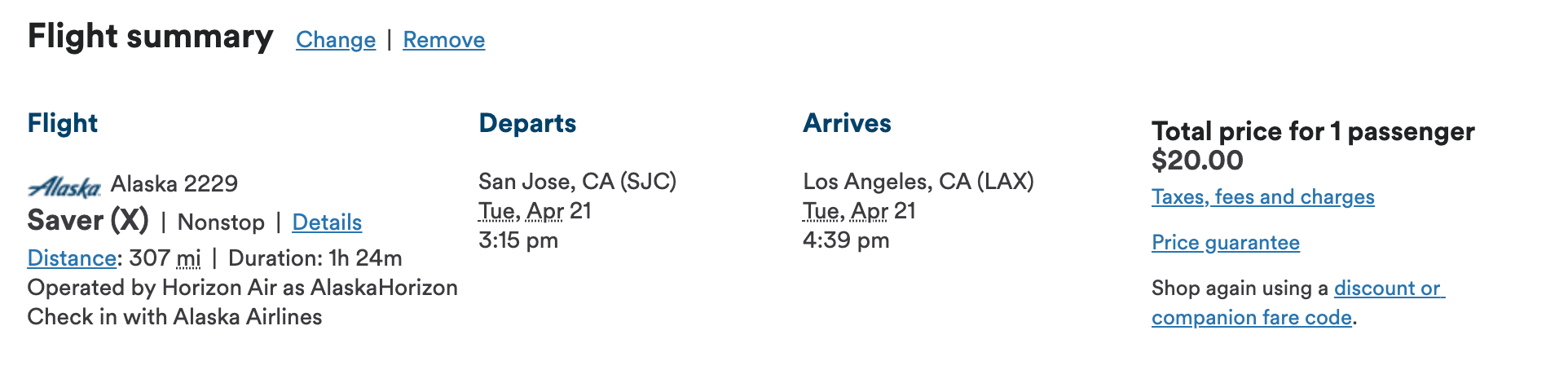 San Jose (SJC) to Los Angeles (LAX) for $20 one-way in Saver: