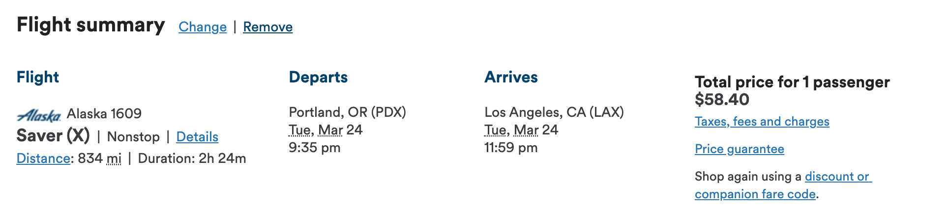 Portland (PDX) to Los Angeles (LAX) for $58 one-way in Saver: