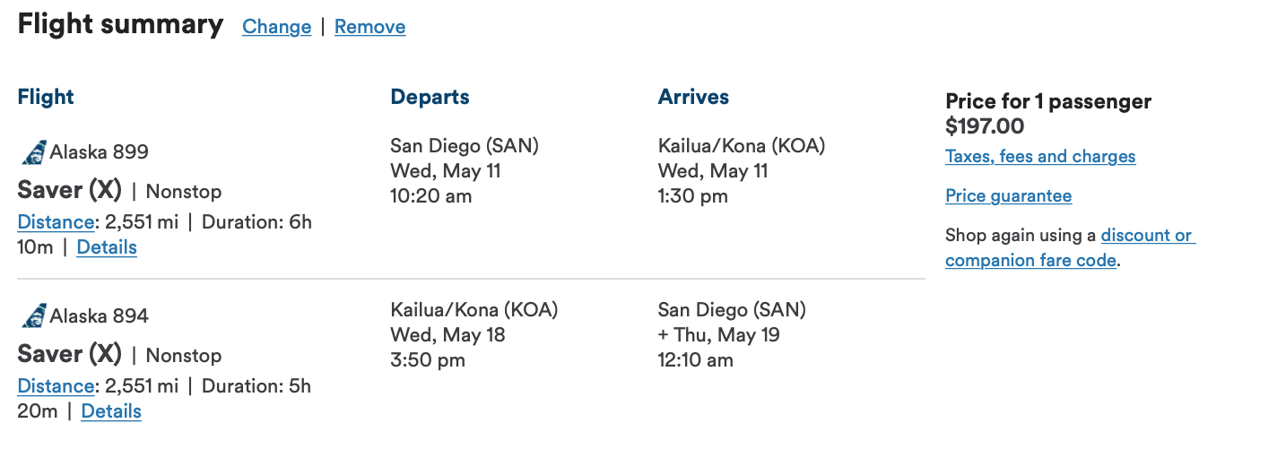 Flights from San Jose (SJC) to Kauai are also available at the best possible price in this sale. We found great availability for this route, which costs just $197 round-trip. Keep in mind, because the sale applies to Monday through Thursday travel, you should plan a trip of at least seven days if you're looking for the absolute best possible price. I'm reasonably certain many of you will not have much trouble with being "forced" to spend seven days or more anywhere in Hawaii.