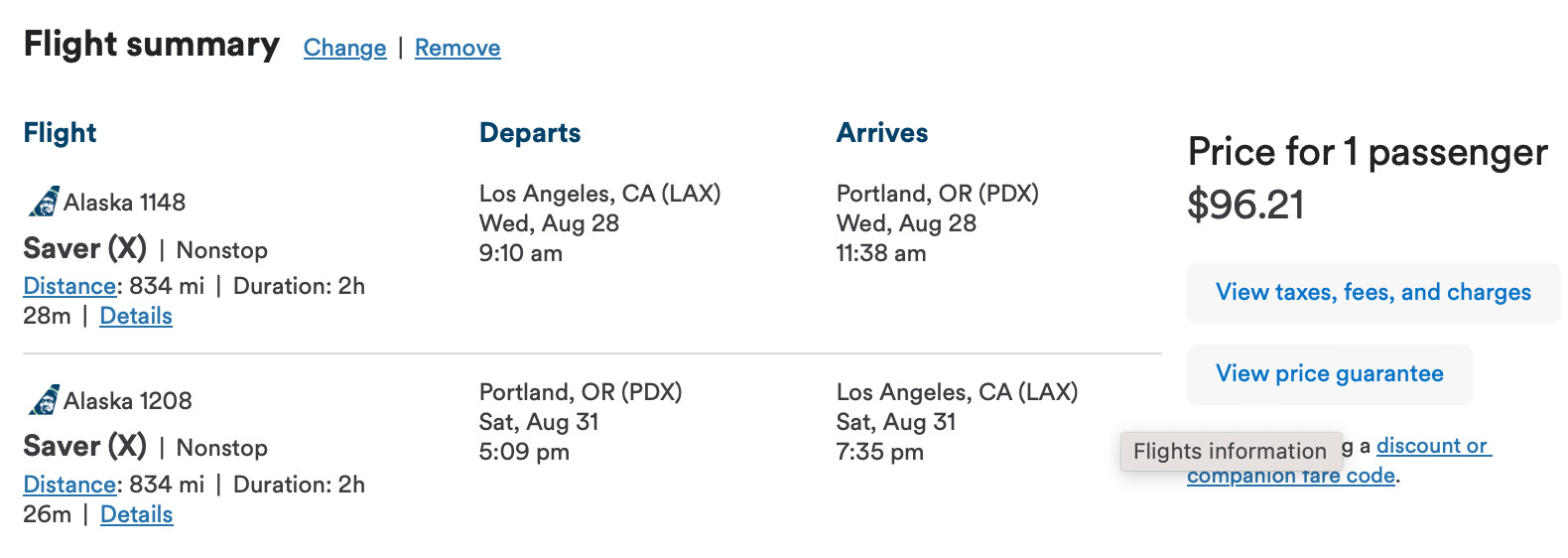 There are flights in late August from Los Angeles to Portland, Oregon, too, for less than $100 round-trip.