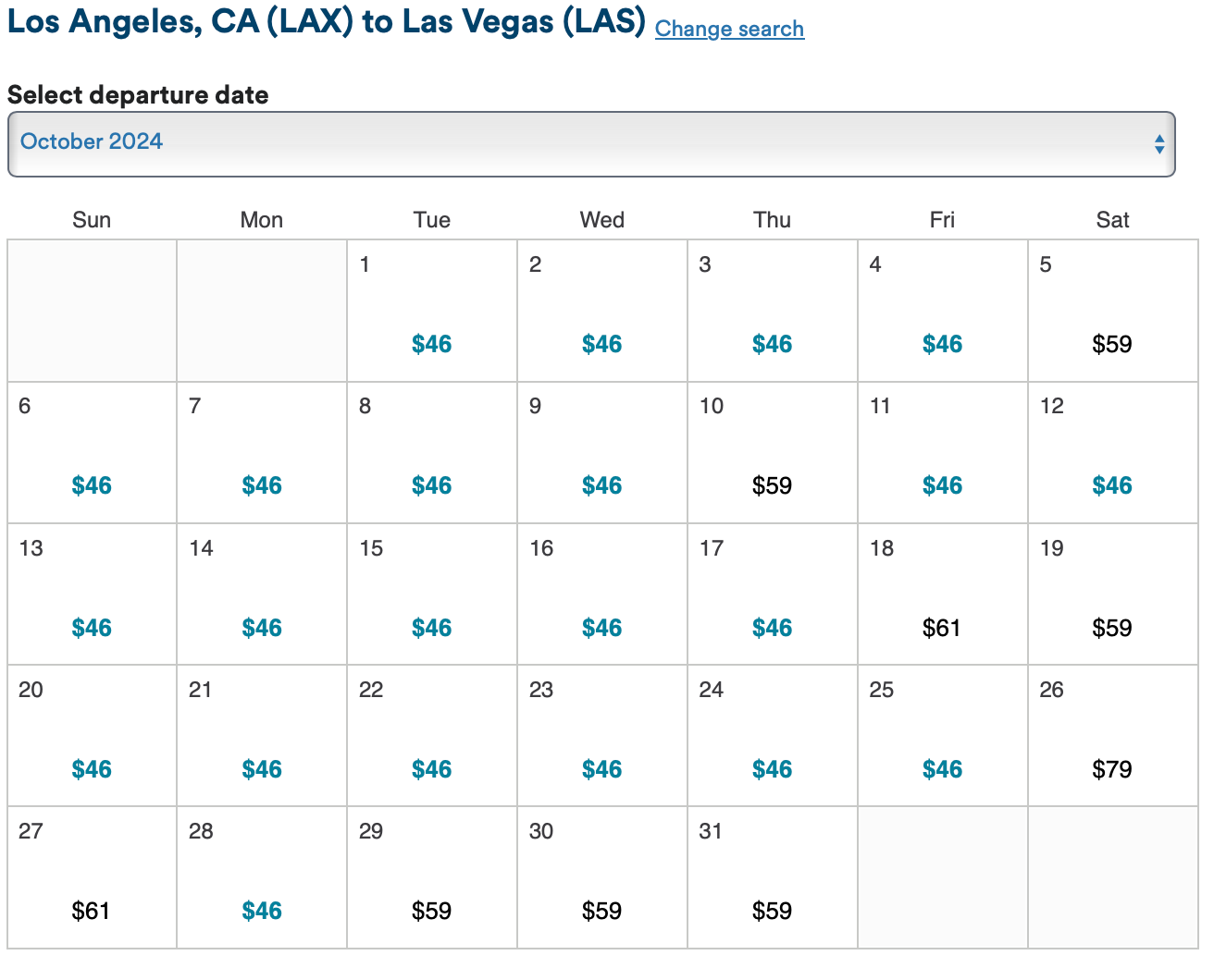 But the lowest fares we found are for Los Angeles-to-Las Vegas flights. They're available for October travel for as little as $46 one-way.