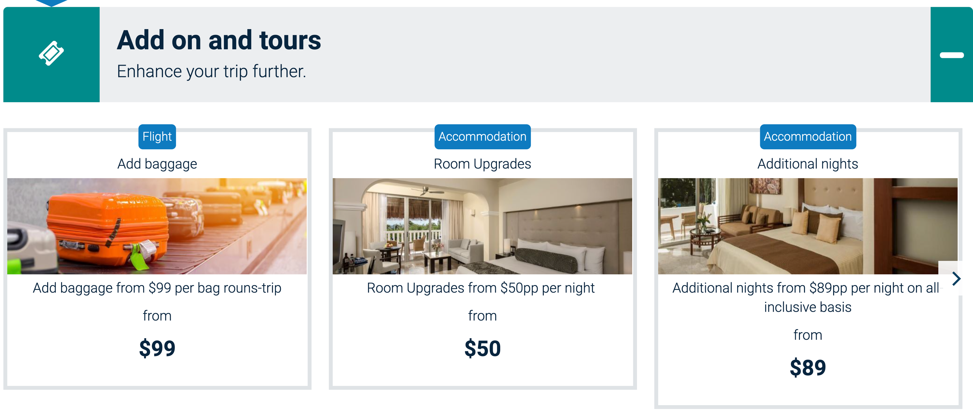 When taking a closer look at this deal, you'll notice that the "all-inclusive" only applies to the resort stay. There are a few extra costs you should consider which you can add to your package during booking.