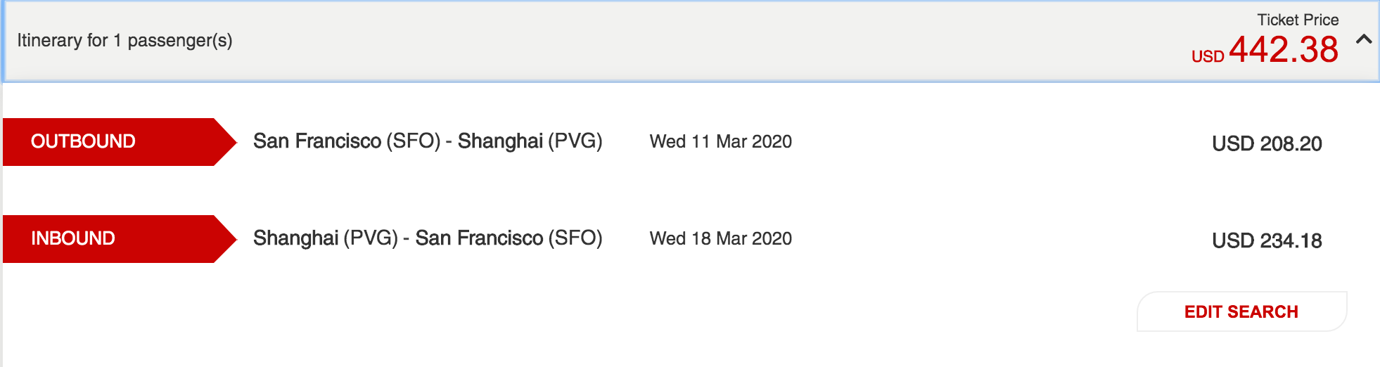 San Francisco (SFO) to Shanghai (PVG) for $442 round-trip on Alaska and Hainan: