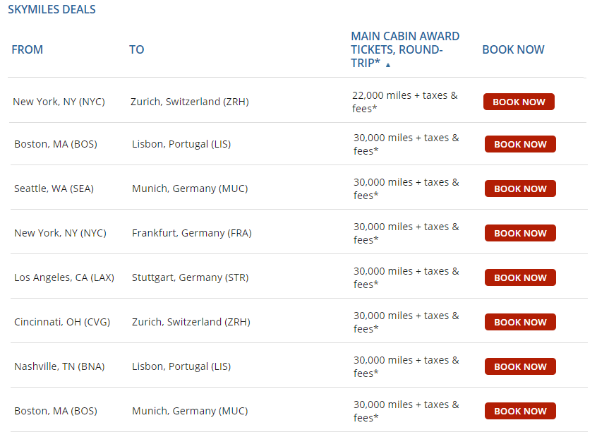 To search, plug in your origin airport at Delta.com along with one of the sale destinations mentioned below. We recommend using Delta's "Flexible Dates" calendar, and making sure to check "shop with miles" when looking at search results.