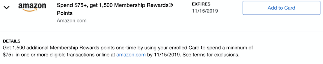 Great deal: Spend $75 at Amazon, Get 1,500 points with new Amex Offer