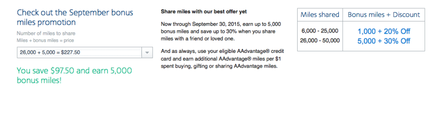 Now through September 30, American Airlines is offering both a bonus and a discount when you share miles.