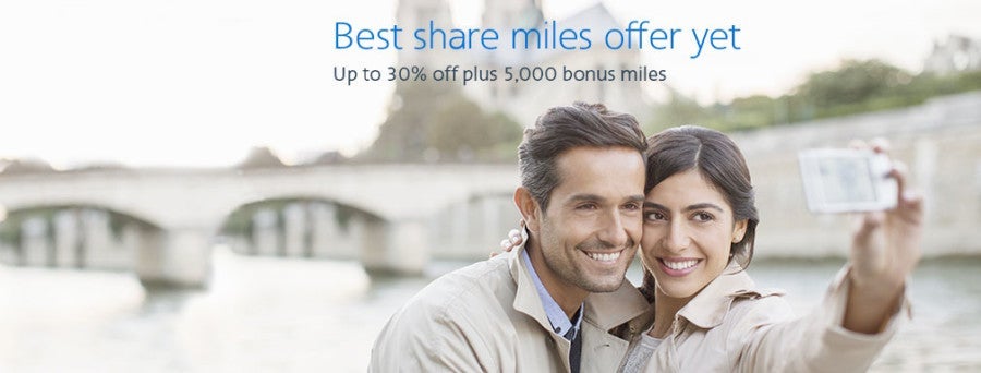 - When you share 26,000-50,000 miles: Get a 30% discount and 5,000 bonus miles