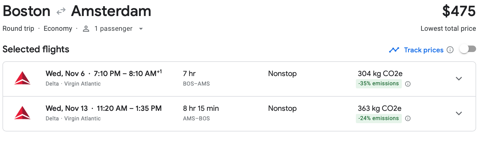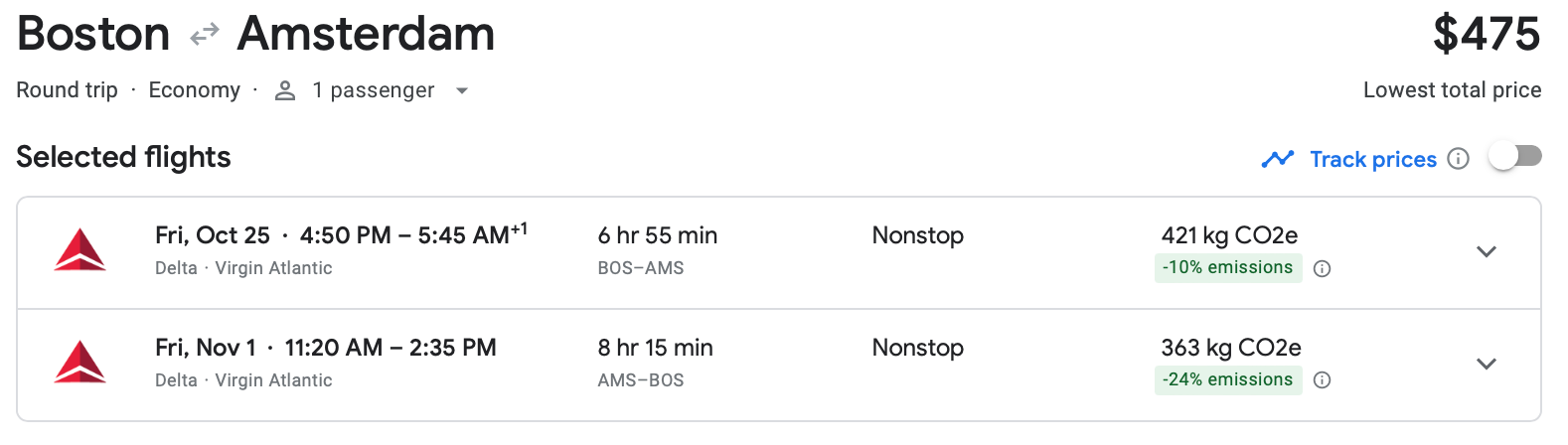 In late October, we found nonstop fares on Delta Air Lines from Boston Logan International Airport (BOS) to Amsterdam Airport Schiphol (AMS) for $475 round-trip.