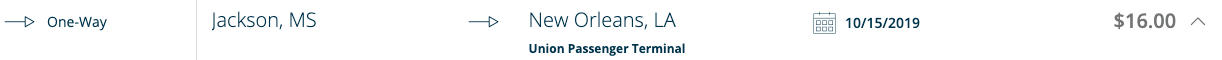 Jackson, MS to New Orleans, LA for $16 one-way: