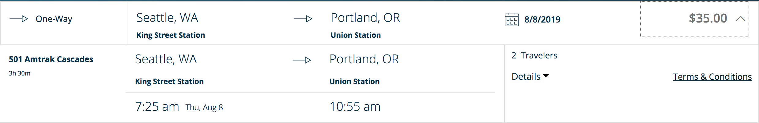 Seattle, WA to Portland, OR for two people for $35 one-way: