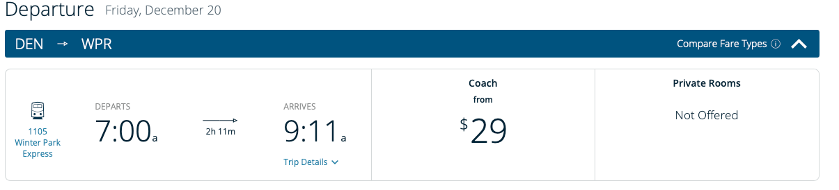 You can purchase tickets now for Amtrak's Winter Park Express train to get from Denver to Winter Park Resort and back. The service is available each weekend from late December through March. One-way tickets start at $19, but fares for some dates will be more expensive.