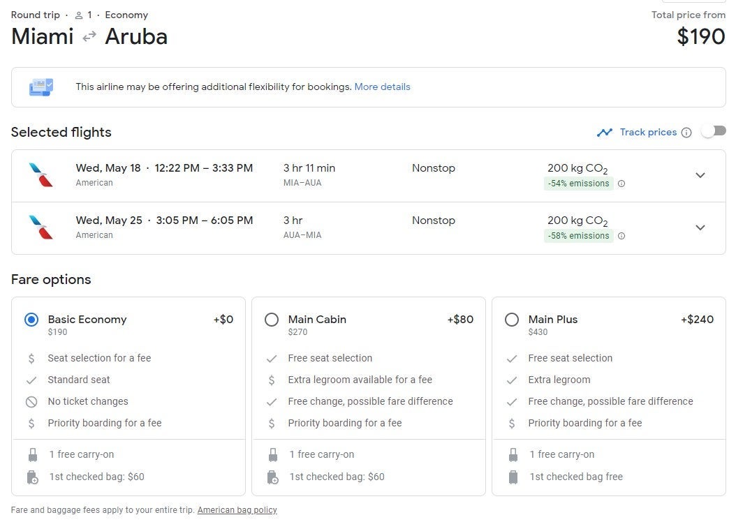 The offers below are for basic economy fares on American Airlines, which include a standard seat and carry-on. Seat selection, priority boarding and a checked bag will cost extra.