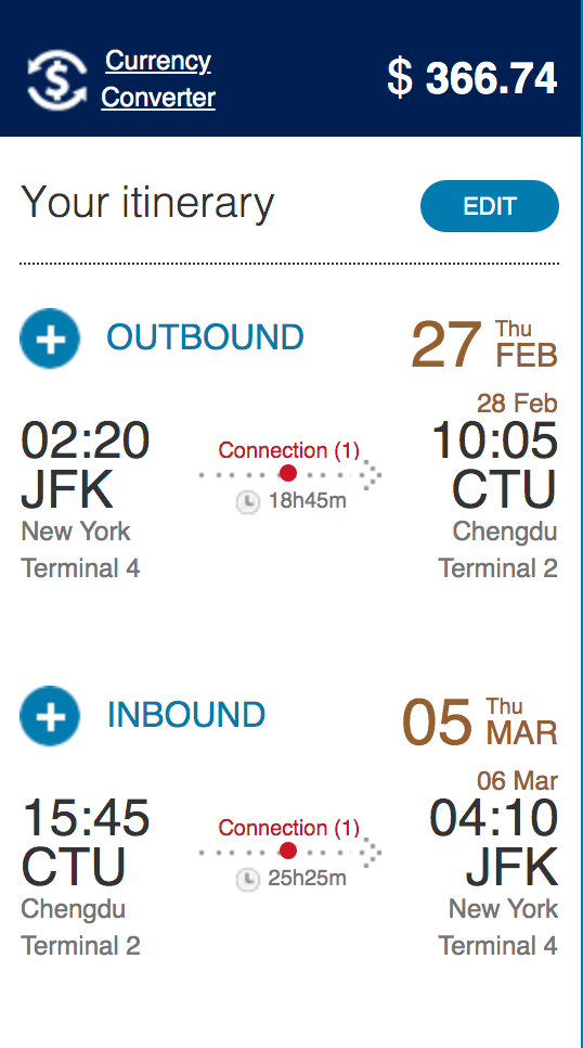 New York-JFK to Chengdu (CTU) for $367 round-trip on China Southern: