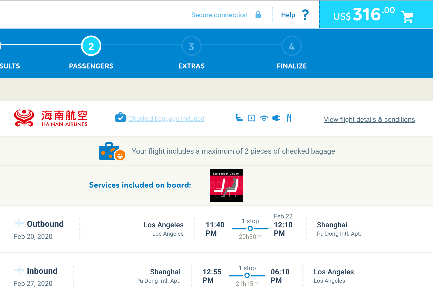 Los Angeles (LAX) to Shanghai (PVG) for $316 round-trip on Hainan via Vayama: