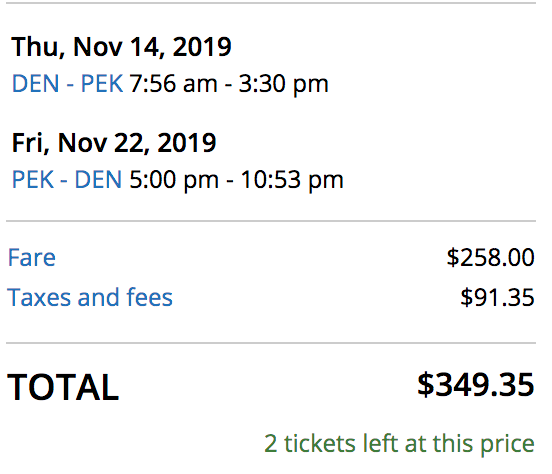 Denver (DEN) to Beijing (PEK) for $349 round-trip on United: