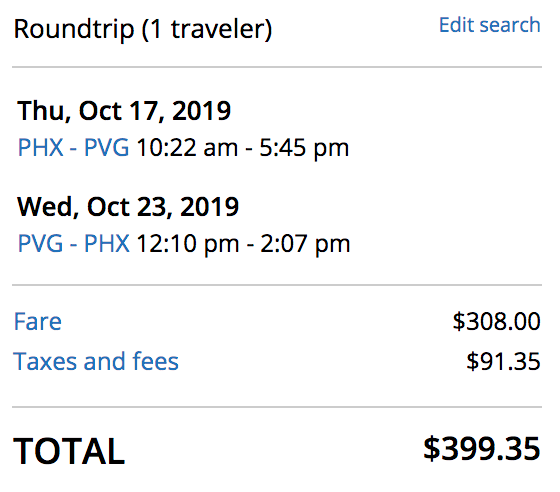 Phoenix (PHX) to Shanghai (PVG) for $399 round-trip on United: