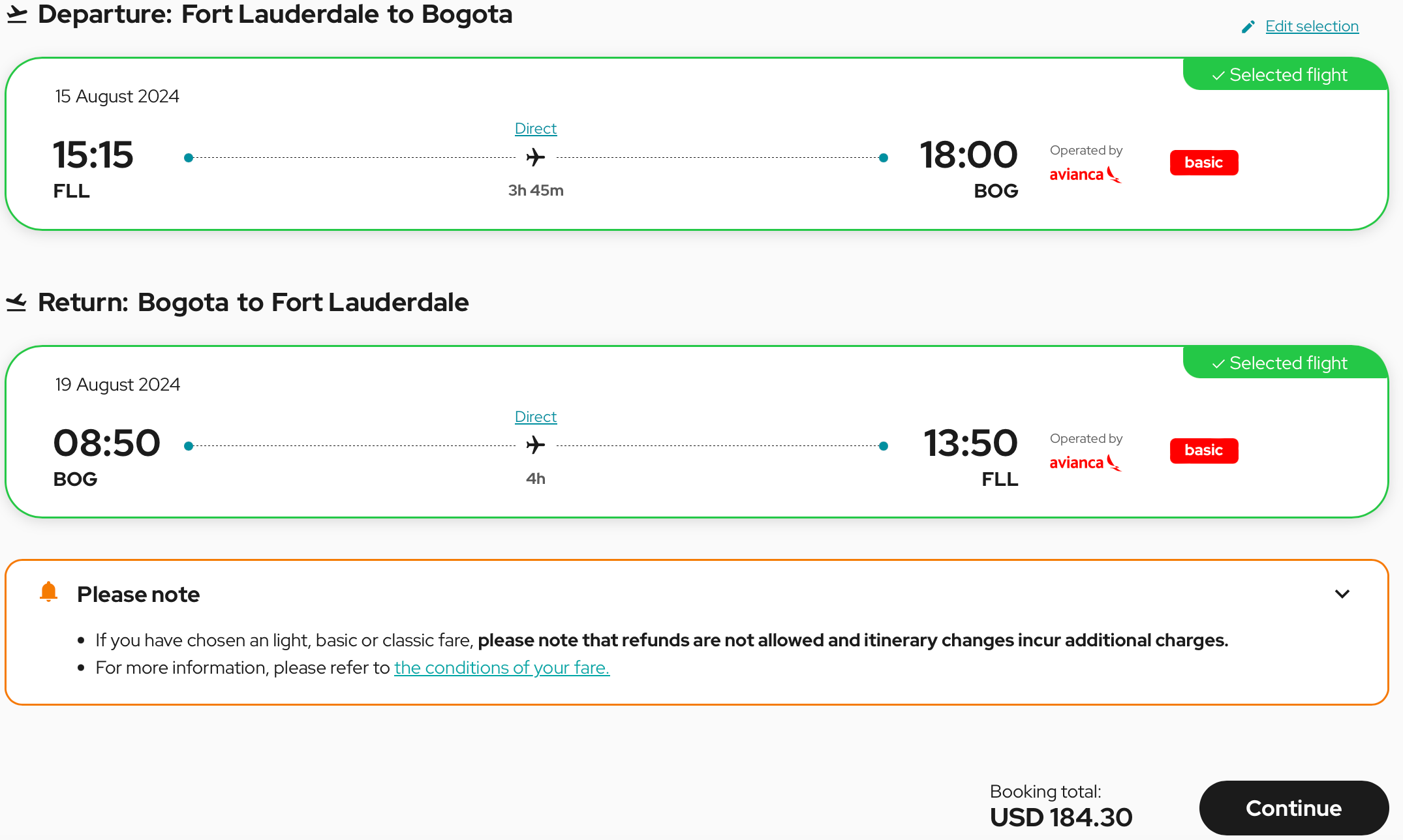 The trick was to find return flights. Most were about $103 or more, which still makes for a good deal. May and June, as well as January and February 2025, had good availability for this route at a discounted rate. Also, many of Avianca's routes from Miami are nonstop — another plus.