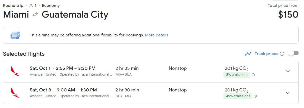 Another option under $200 is from New York (JFK) to Guatemala City (GUA) for $193 round trip.