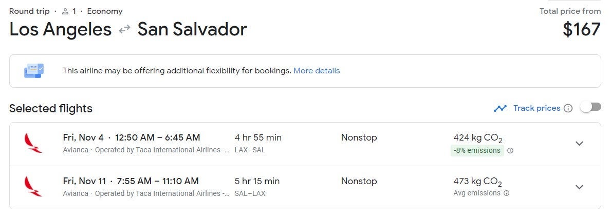 For the same price, travelers can go from Los Angeles (LAX) to San Salvador (SAL) for $167 round trip.
