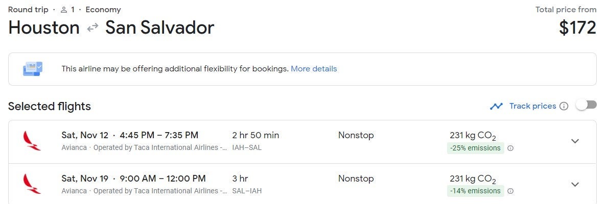 There are affordable options throughout October and November to travel from Houston (IAH) to San Salvador (SAL) for $172 round-trip.