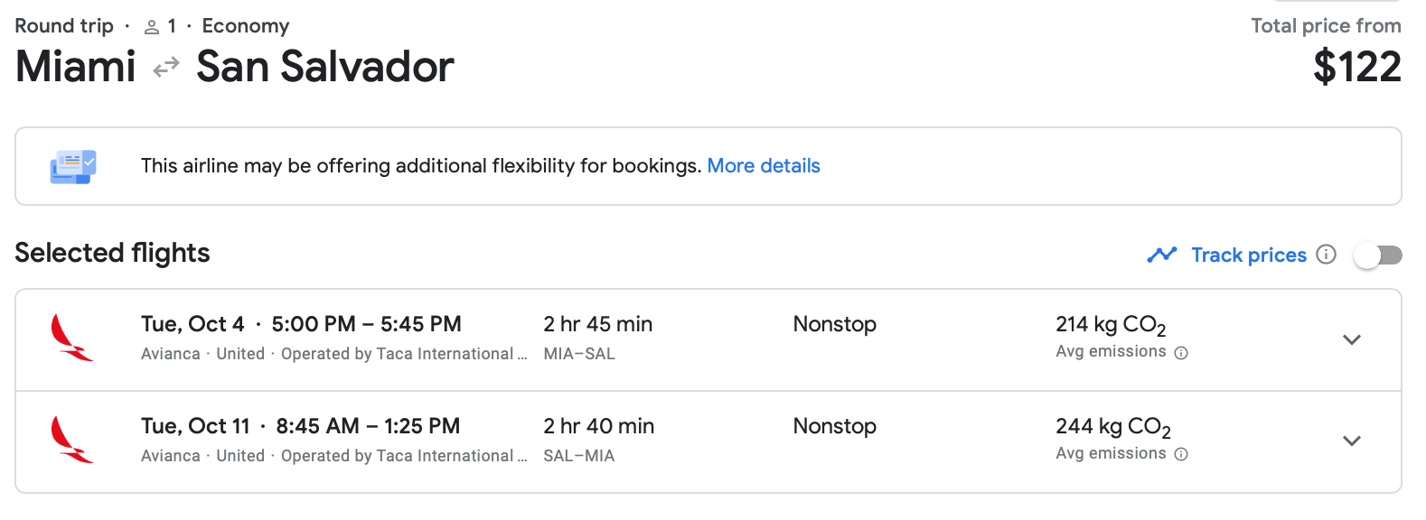 Miami to San Salvador (SAL) can be booked for just $122 nonstop in October.
