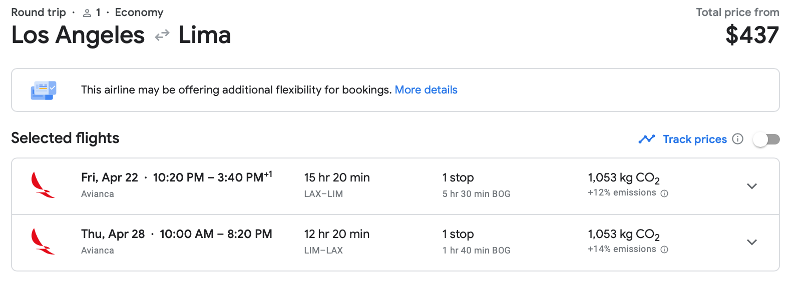 We also found a fare from Los Angeles (LAX) to Lima in May that was only $437, almost 50% cheaper than normal.