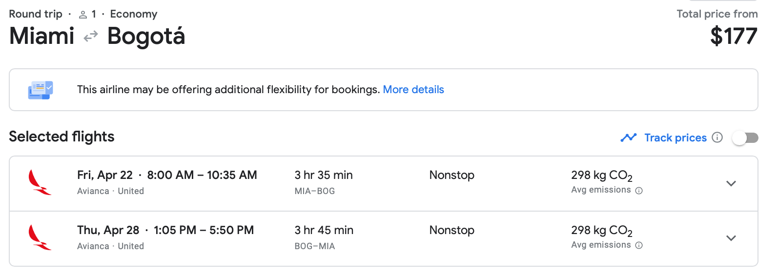 Miami (MIA) to Bogota, Colombia (BOG) is steeply discounted in April. Avianca has nonstop fares to the Colombian capital for just $177.