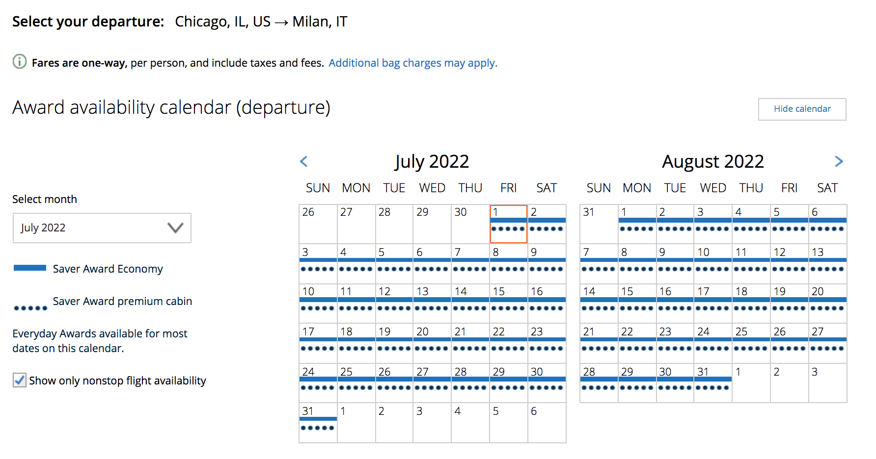 Here's a look at award space on five of United's newly announced routes to Europe. Note that the award space shown here isn't exhaustive and you may find seats on other dates as well. Further, the award space shown below is for one passenger but many dates have space for 2 or more passengers.