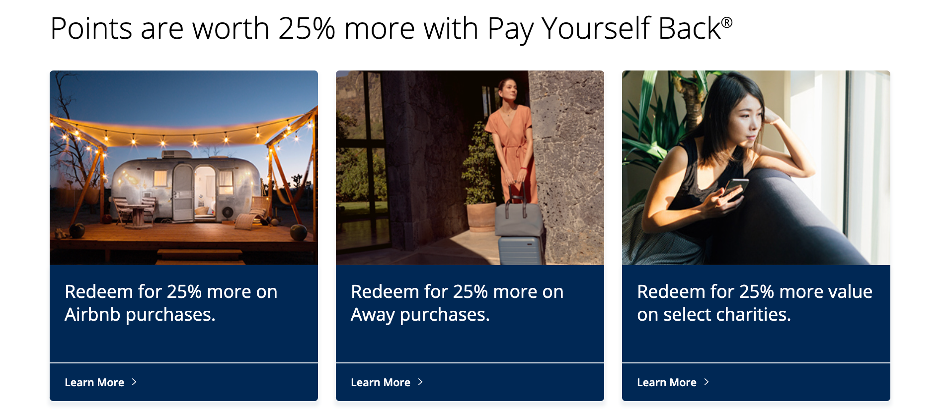 Even without the discount, the bags can still be quite expensive, and I wasn't particularly in the mood to shell out $150+. Then, I remembered that Chase's Pay Yourself Back (PYB) tool allows you to offset certain purchases at an elevated rate (1.25 to 1.5 cents, depending on the card) — and right now, it's for Airbnb and Away purchases.