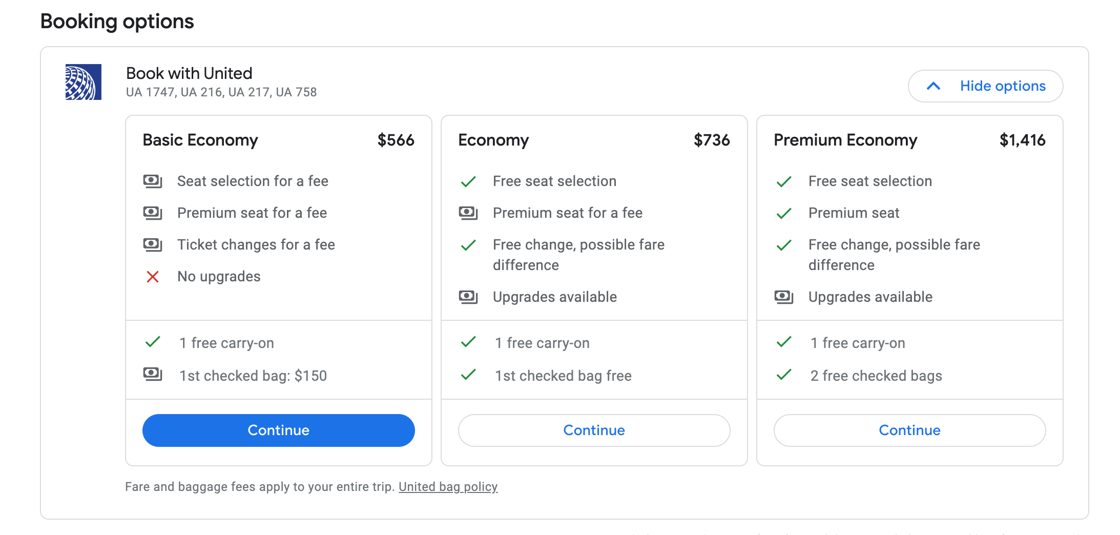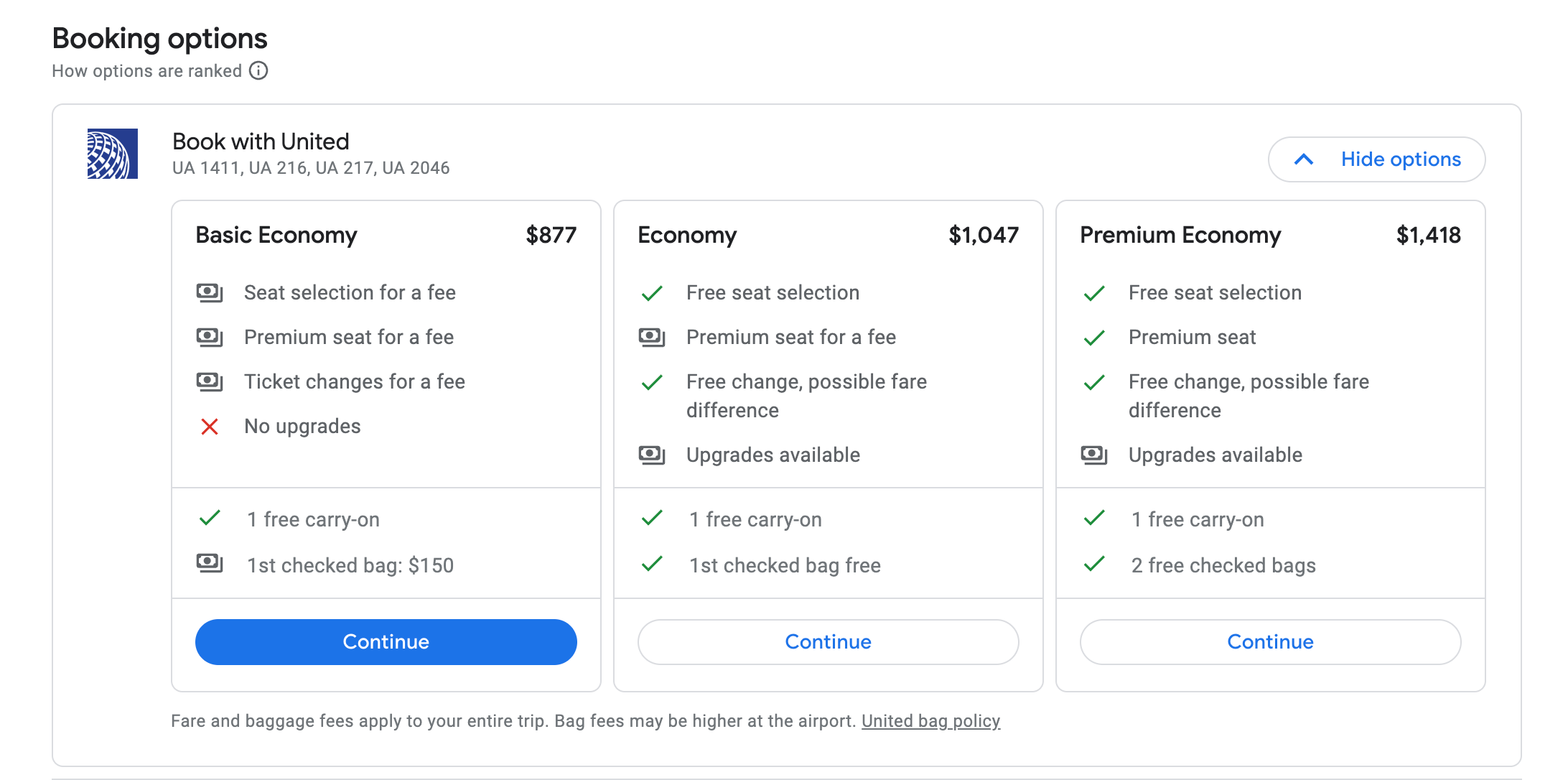 How to book: Search Google Flights and book directly with United.