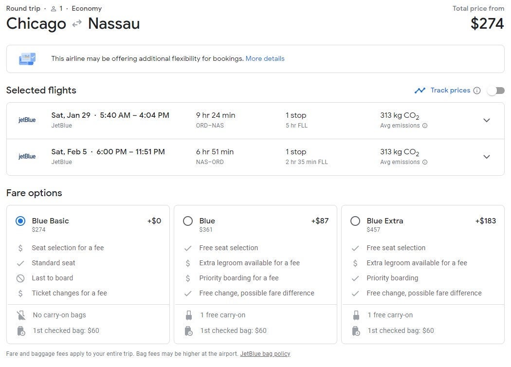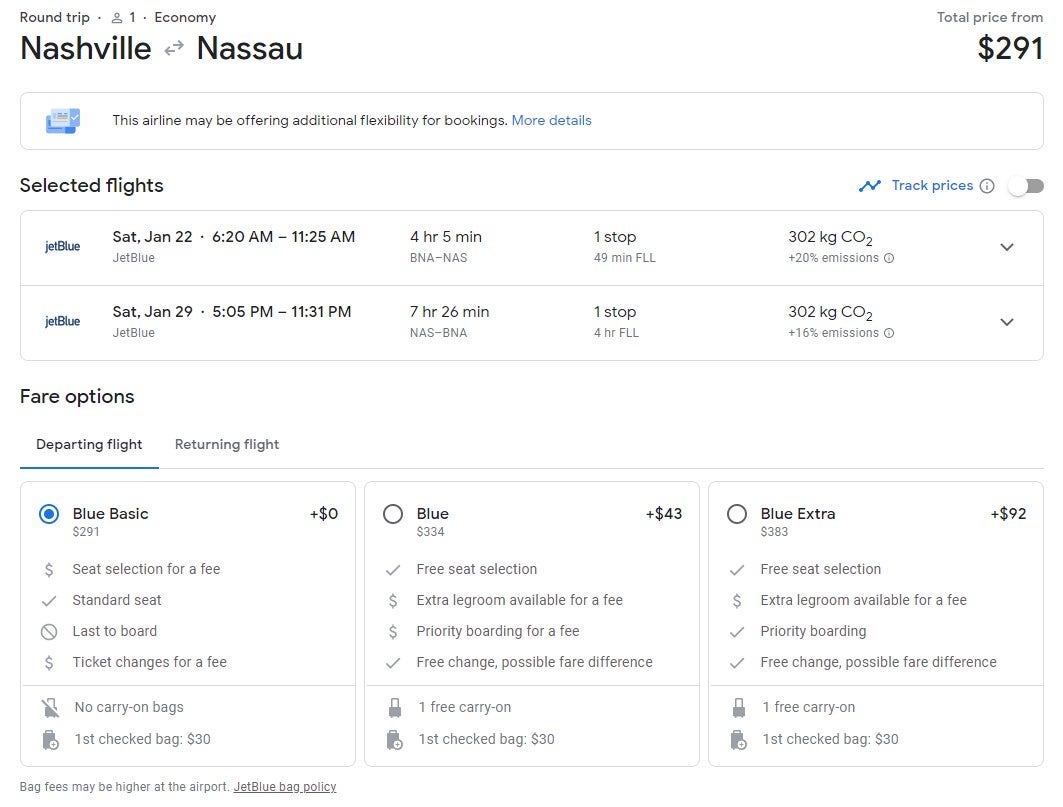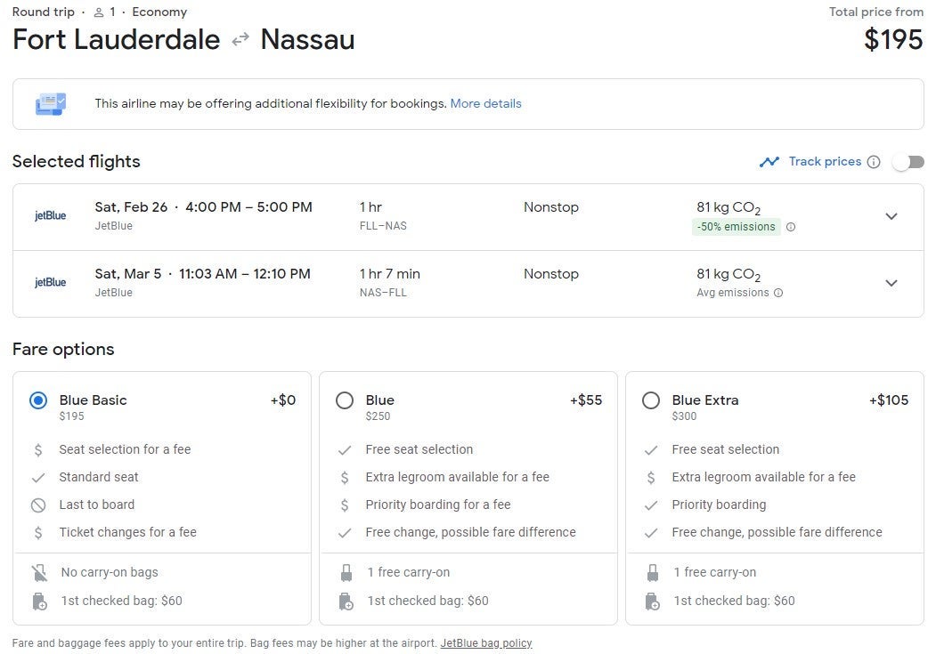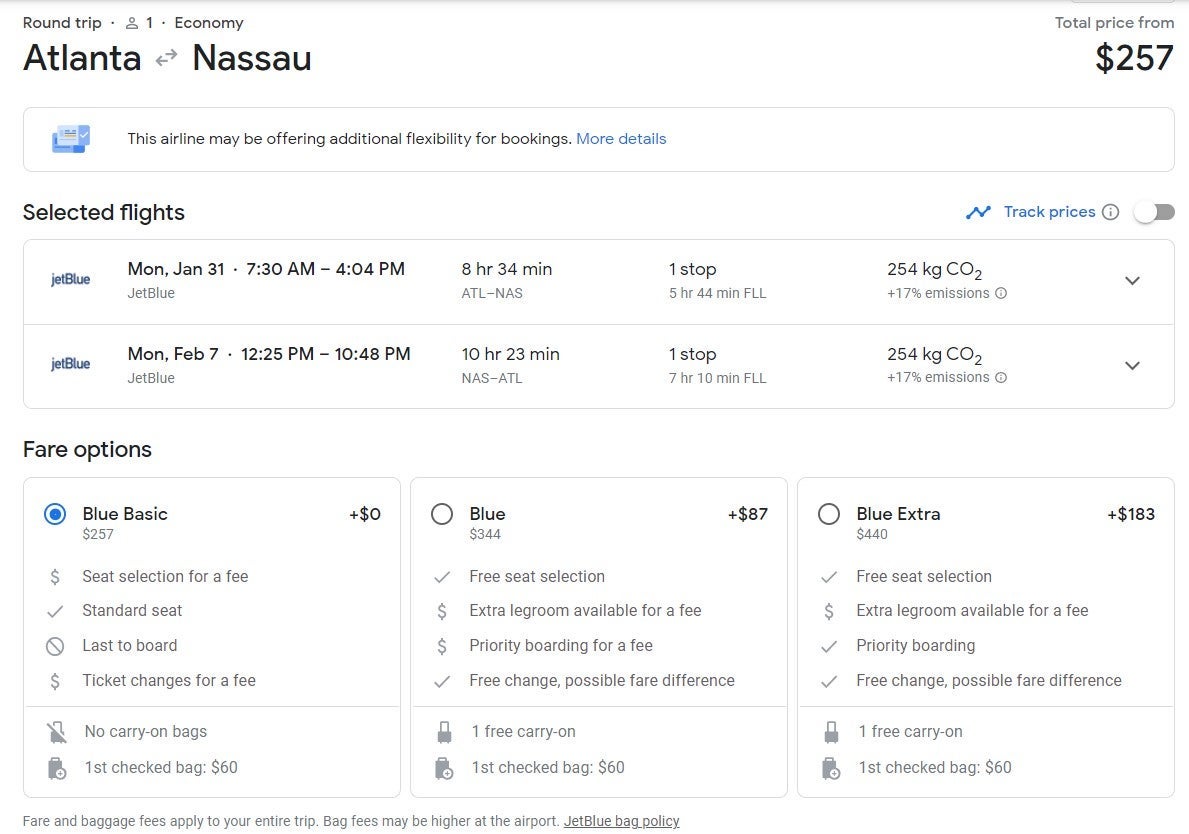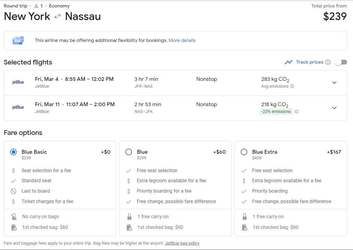 The fares below are for Blue Basic tickets on JetBlue, which only include a standard seat. You will have to pay extra for a carry-on, checked bag and/or seat selection.