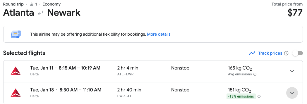 Let's start with this nonstop flight in January from Atlanta to EWR for $77 on Delta.