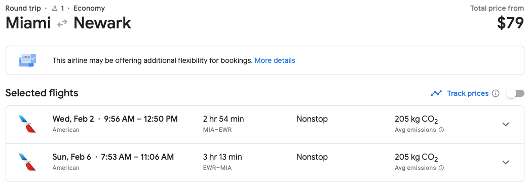 Since Miami-New York is a popular route for travelers based in both cities, let's try this nonstop round-trip fare for $79 from MIA to EWR for $79 on American.