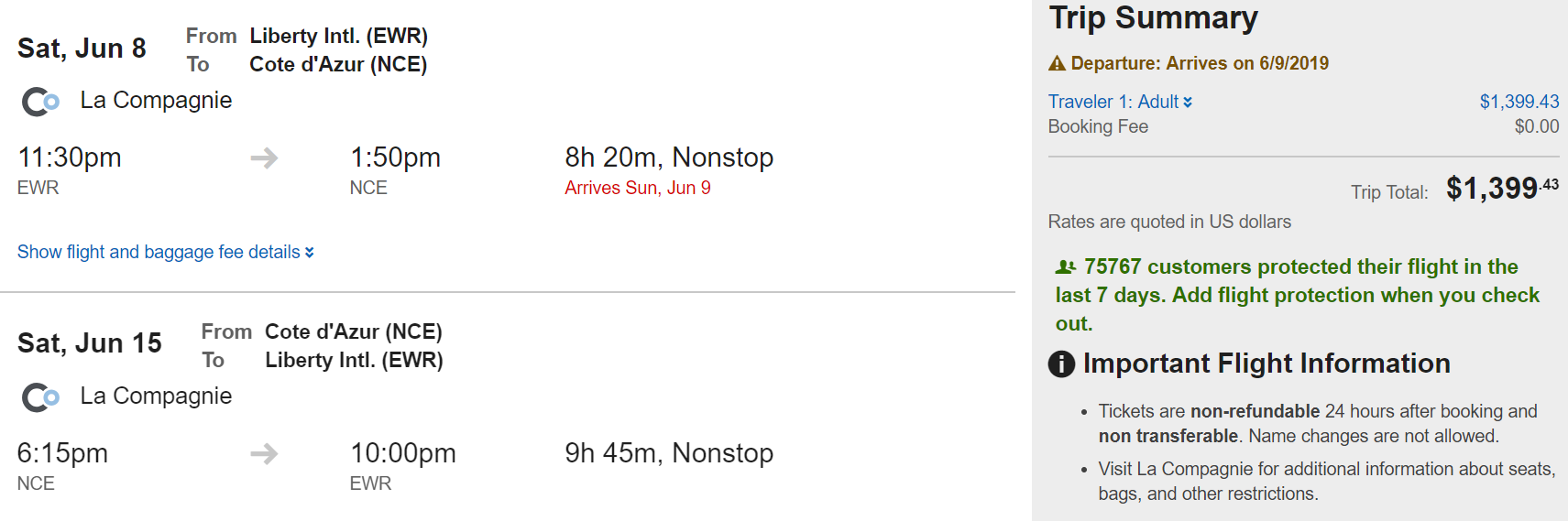 Newark (EWR) to Nice (NCE) for $1,399 round-trip nonstop in business on La Compagnie in June: