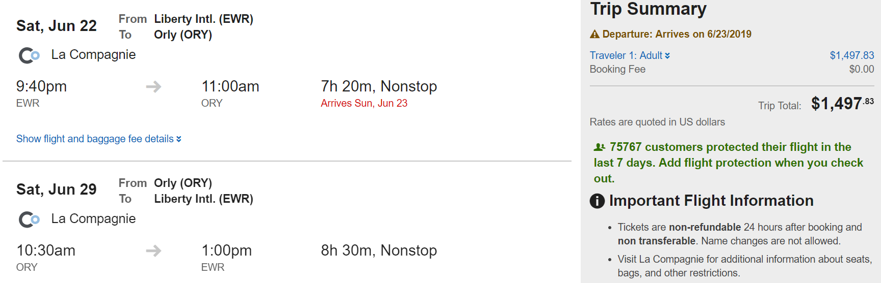Newark (EWR) to Paris Orly (ORY) for $1,498 round-trip nonstop in business on La Compagnie in June: