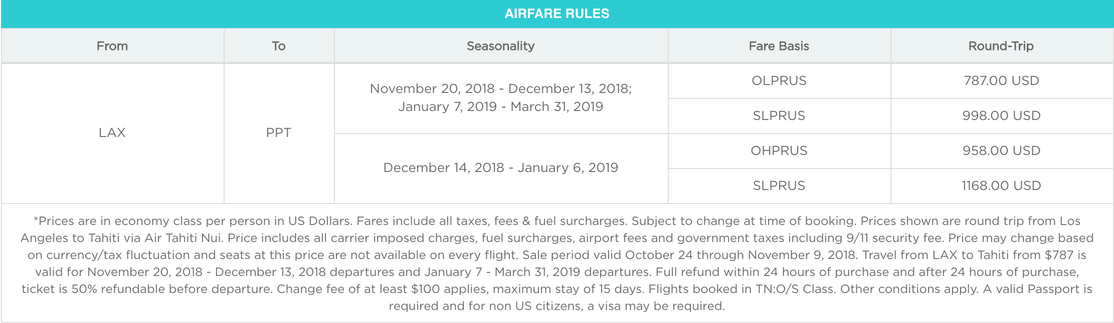 In order to get the discount, you must book on the Air Tahiti Nui booking engine. Keep in mind the sale ends on Nov. 9, 2018. Make sure to double check that your trip is on the 787 before booking as well -- the new aircraft will be limited to three to four flights per week initially with other trips operated on Air Tahiti Nui's Airbus A340.