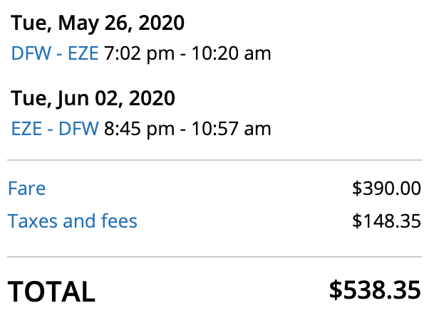 Dallas (DFW) to Buenos Aires (EZE) for $538 round trip on United: