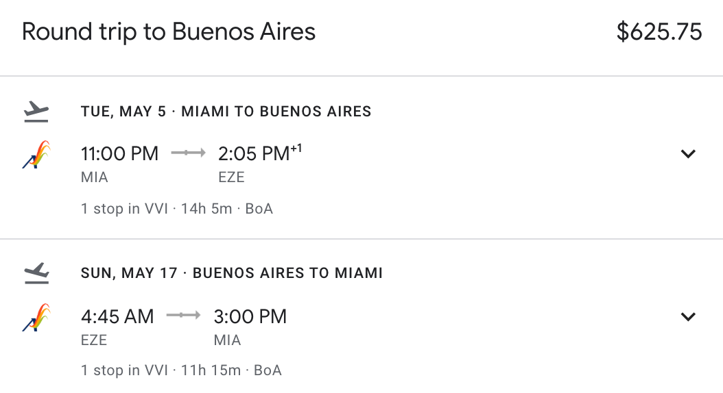 Miami (MIA) to Buenos Aires (EZE) for $626 round trip on BoA via Google through CheapoAir: