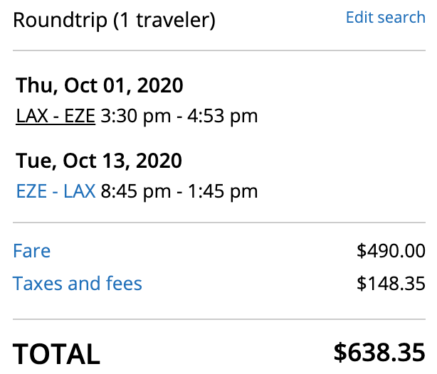 Los Angeles (LAX) to Buenos Aires (EZE) for $638 round trip on United: