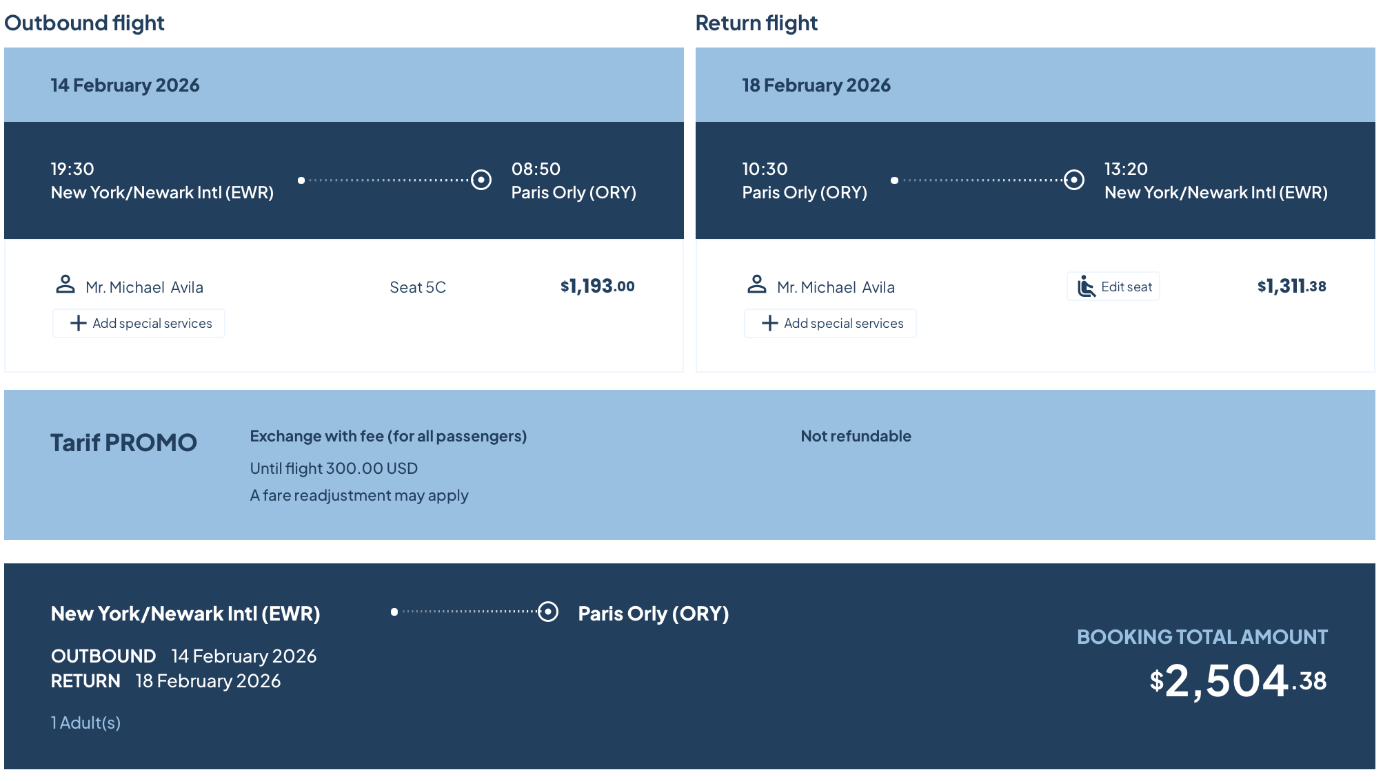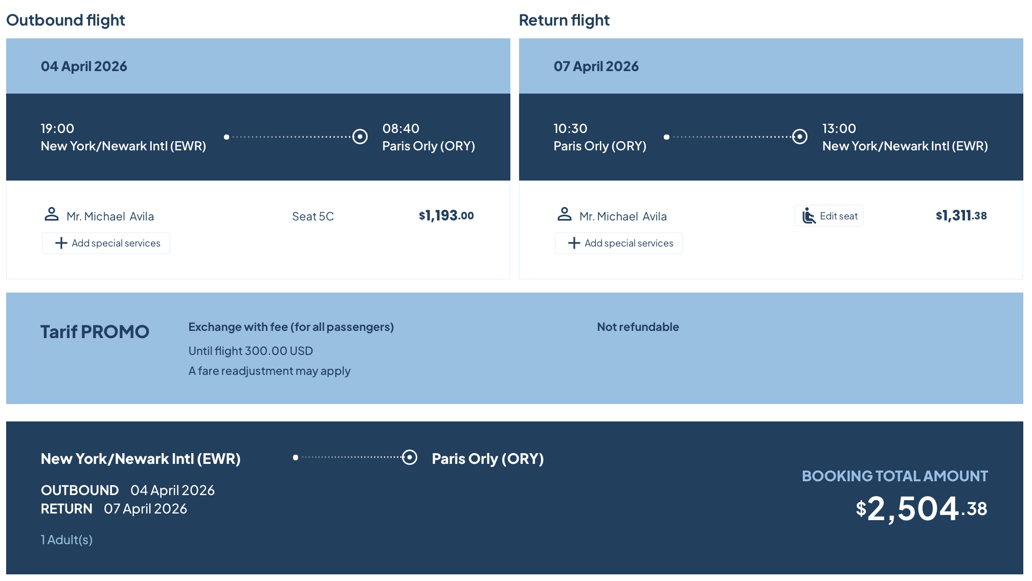 - EWR-ORY: From $2,504 round-trip