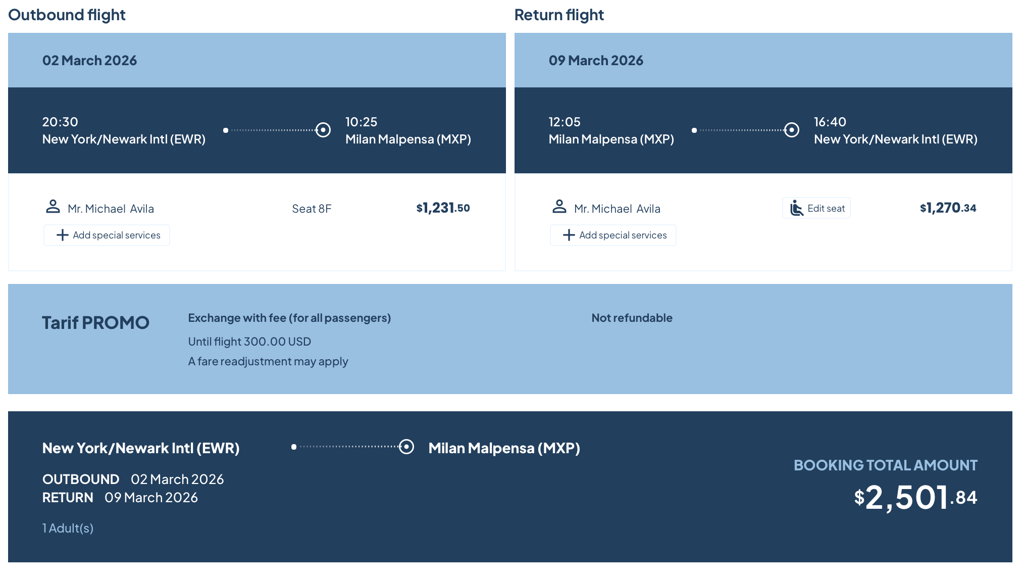 - EWR-MXP: From $2,501 round-trip