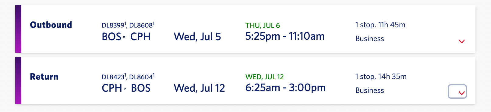 To keep the fares the same, Delta and Air France have two flights leaving Copenhagen on July 12 at 6:25 a.m. Both also have a layover in Paris.