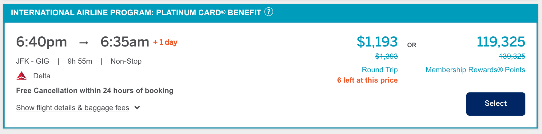 New York-JFK to Rio (GIG) for $1,193 round-trip nonstop in business class through the International Airline Program: