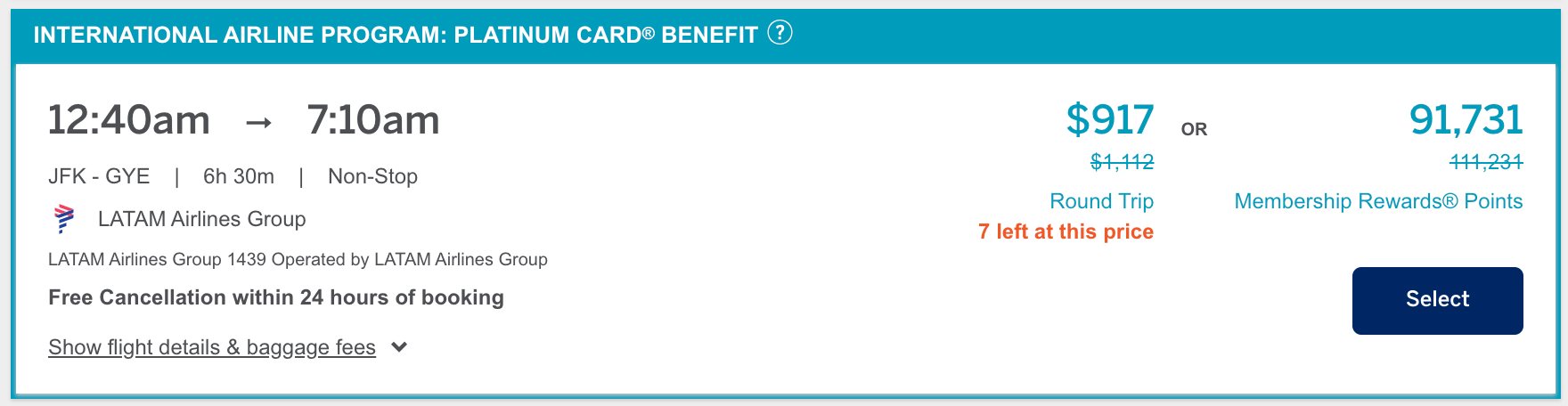 The best deal can be found using Amex Travel's International Airline Program (IAP), which is a perk you have if you hold The Platinum Card® from American Express, The Business Platinum Card® from American Express, or The Centurion Card from American Express. Make sure you check there first, which drops the price to Guayaquil to $917 and Rio to under $1,200. The dates for travel appear to be between January and February 2020.
