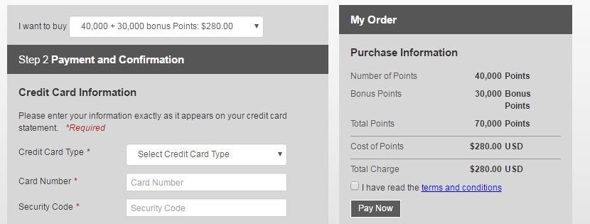 - Points may be purchased in increments of 1,000 points, up to a maximum of 40,000 points per calendar year. Bonus points will not count toward the annual 40,000 points purchase maximum.